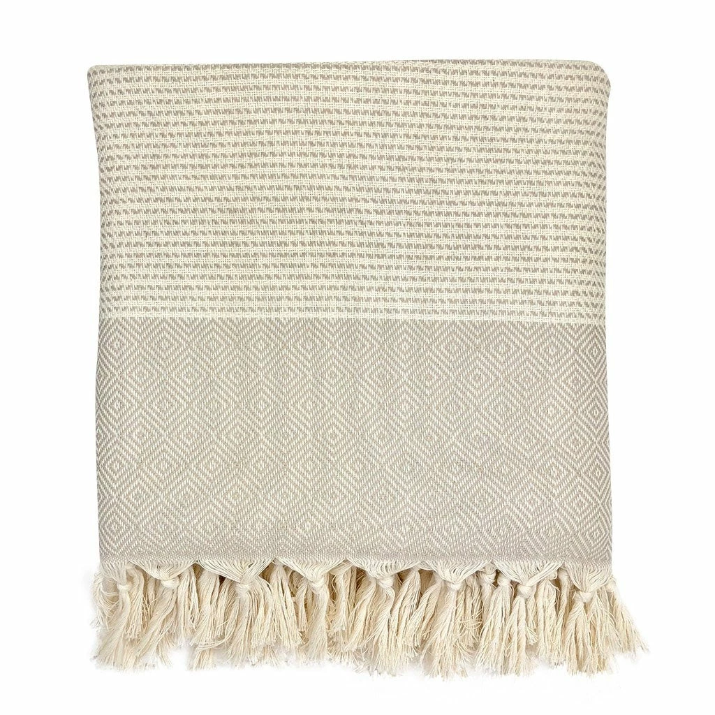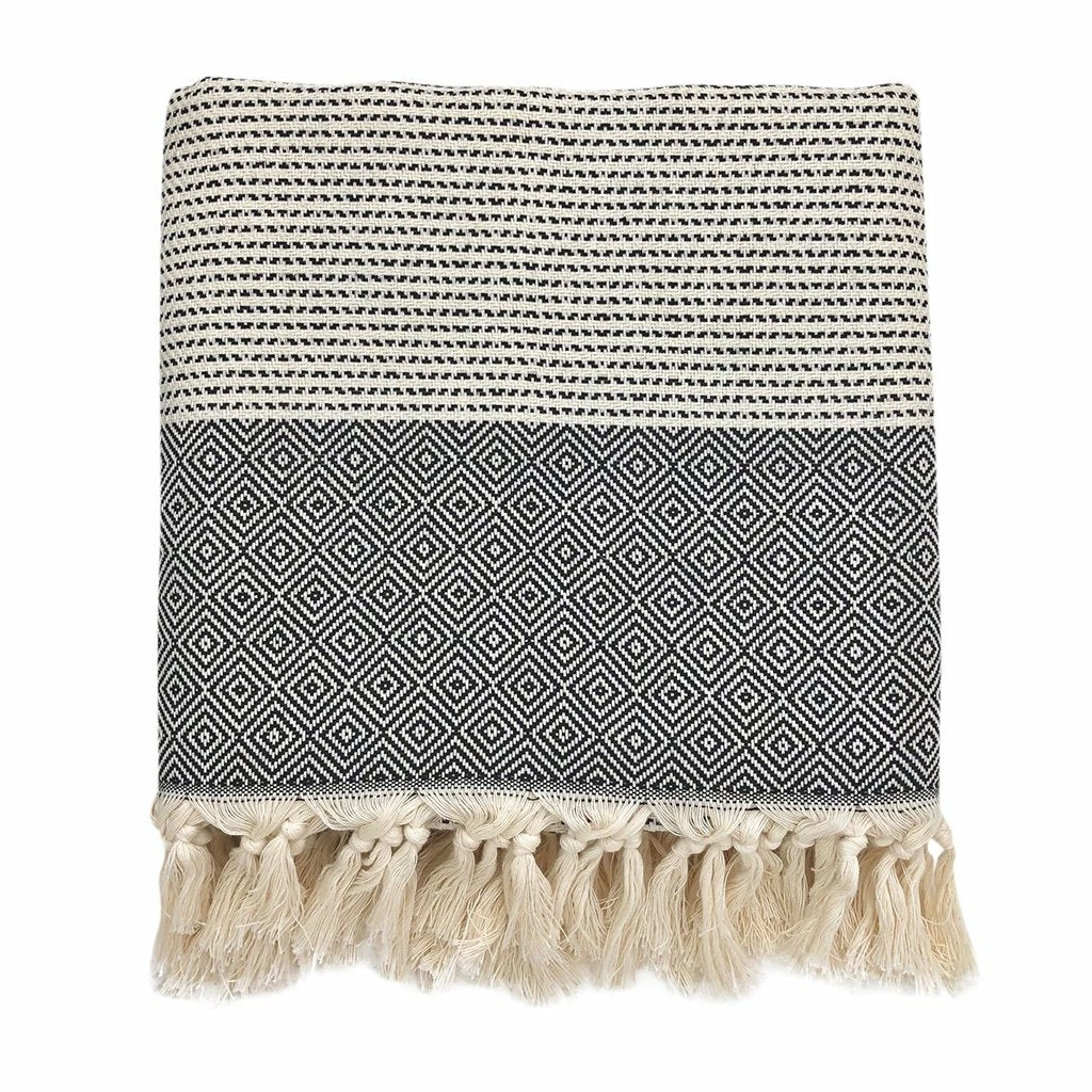 Add texture and contrast to your home decor with a super cozy Diamond Stripe Turkish throw. They feature an intricate diamond pattern and hand knotted fringe. These blankets are extremely versatile and ideal for bed spreads, snuggling up on the sofa or even as beach blankets.
