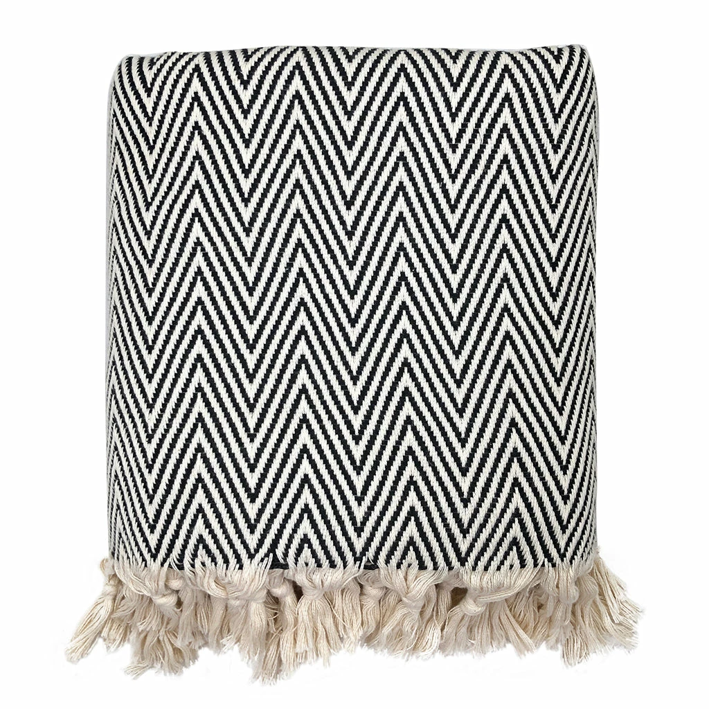 Add texture and contrast to your home decor with a super cozy Chunky Chevron Turkish Throw. These plush blankets are heavier and larger than our other Turkish throws and feature an intricate chevron pattern with hand knotted fringe. They are extremely versatile and ideal for bed spreads, snuggling up on the sofa or even as beach blankets.