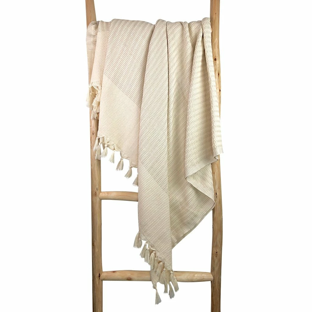 Add texture and contrast to your home decor with a super cozy Plush Wavy Turkish throw. They feature an intricate wave like pattern and hand knotted fringe. These blankets are extremely versatile and ideal for bed spreads, snuggling up on the sofa or even as beach blankets.