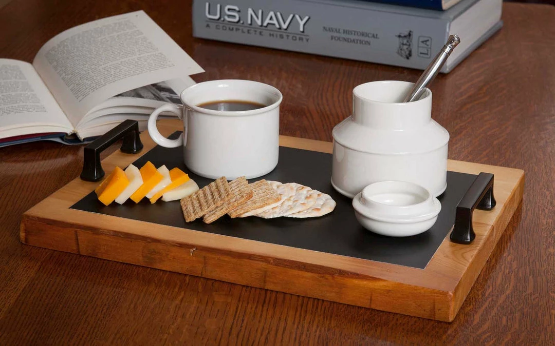 Chalkboard Serving Tray-Small brings your favorite hot beverage and snack with you on this decorative and functional tray. Whether getting cozy with a good book or entertaining friends at the coffee table, this wood tray is an ideal size for intimate gatherings. Or accent your table with a festive message on the chalkboard surface.