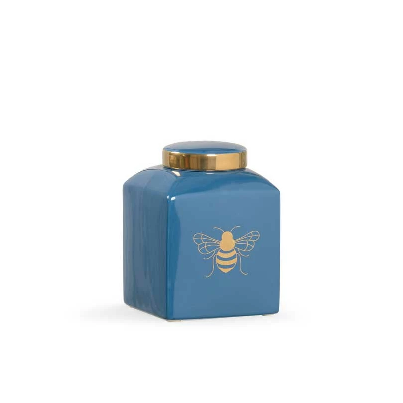 The Bee Kind Ginger Jar in blue is a charming, mini tabletop version of a traditional ginger jar. Featuring a royal bee in metallic satin gold, this smallest version coordinates nicely with the larger counter and table top versions. Available in a variety of colors from designer Shalyla Copas.