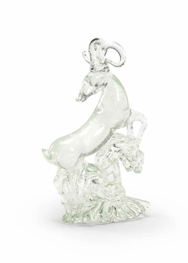 Tame the wildlife in your figurine displays with the Glass Ram-Rear Facing. Perched upon a rock outcropping, the clear glass is speckled with silver for textural context. Pair it with the Glass Ram-Front Facing for an even more impressive setting.