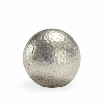 Hammered Ball – Silver (small) is of composite material with a silver-leaf finish. Add dimension to your Holiday table with the complementing medium or large balls. Or mix in variety with the gold hammered balls, also available.