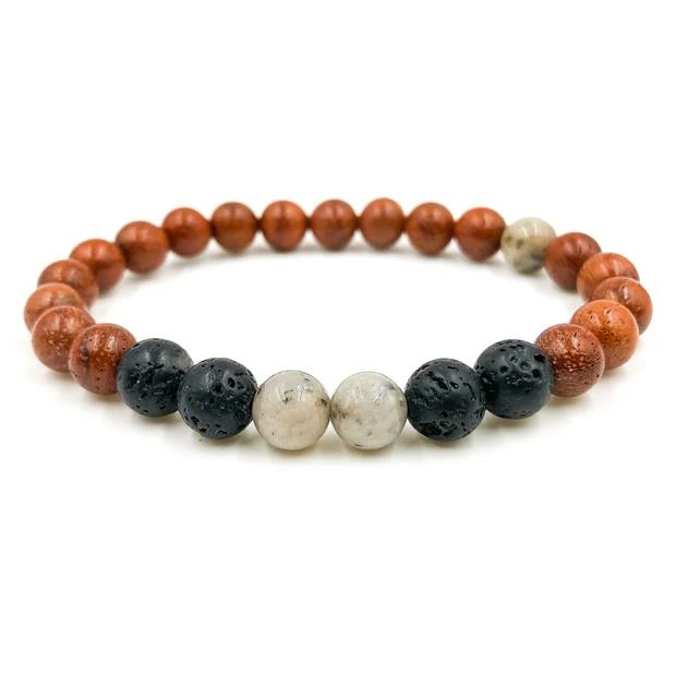 - – 8mm grey feldspar, lava rock and rosewood beads