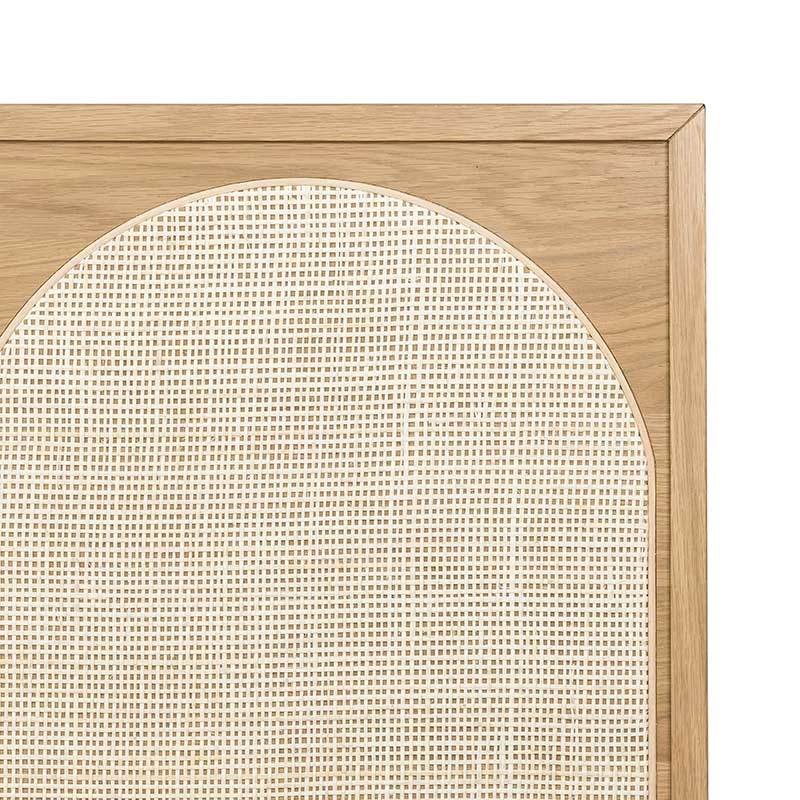 The Allegra Bed has an au naturale look with the light oak bed frame featuring trend-forward cane arches and panel footboard detailing. The soft, neutral look makes for a lasting modern style with your bedroom decor.