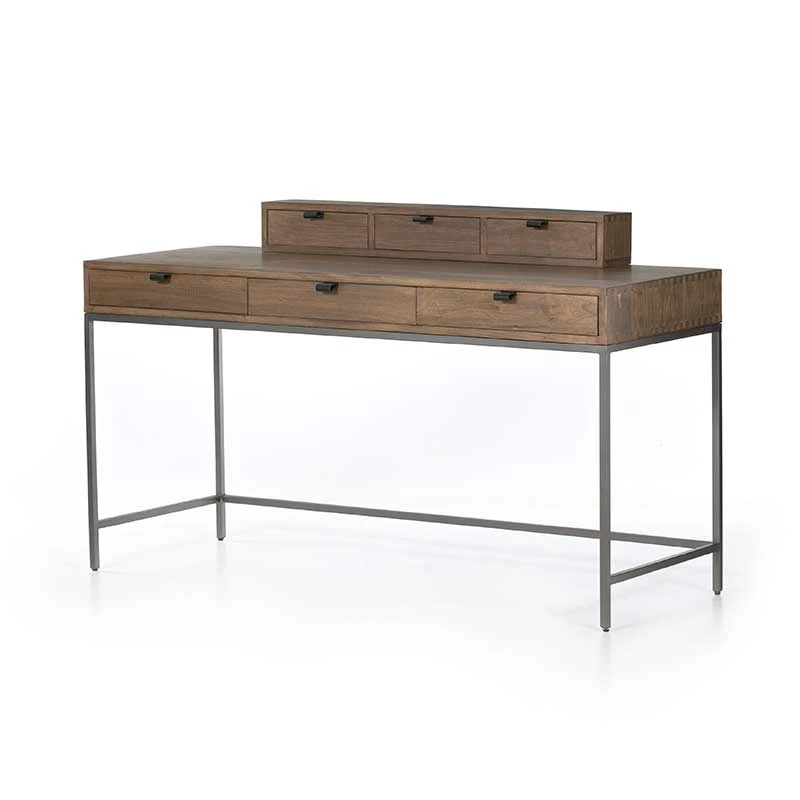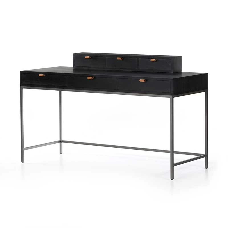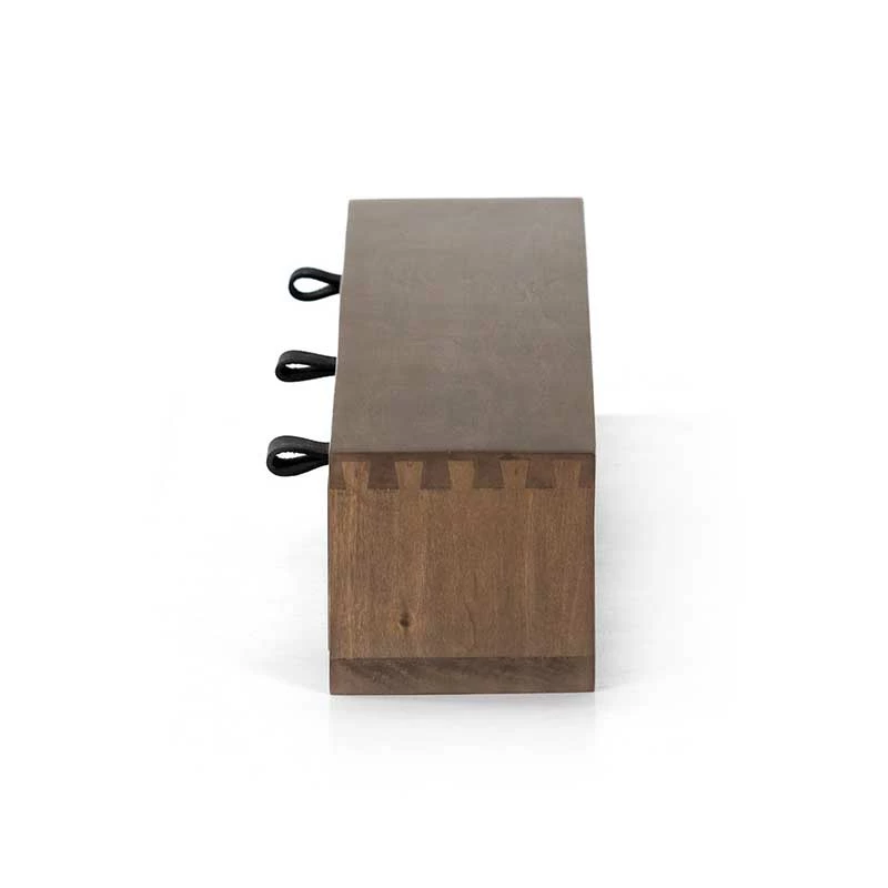 The Trey Desk Organizer is a versatile addition to your home office decor, in the kitchen, or on your dresser. The three-drawer organizer is crafted from poplar with top grain leather pulls. Available in Auburn or Black Wash, this piece adds the natural texture of wood to complement your decor. Perfect for keeping bills off the desk or recipes handy in the kitchen.