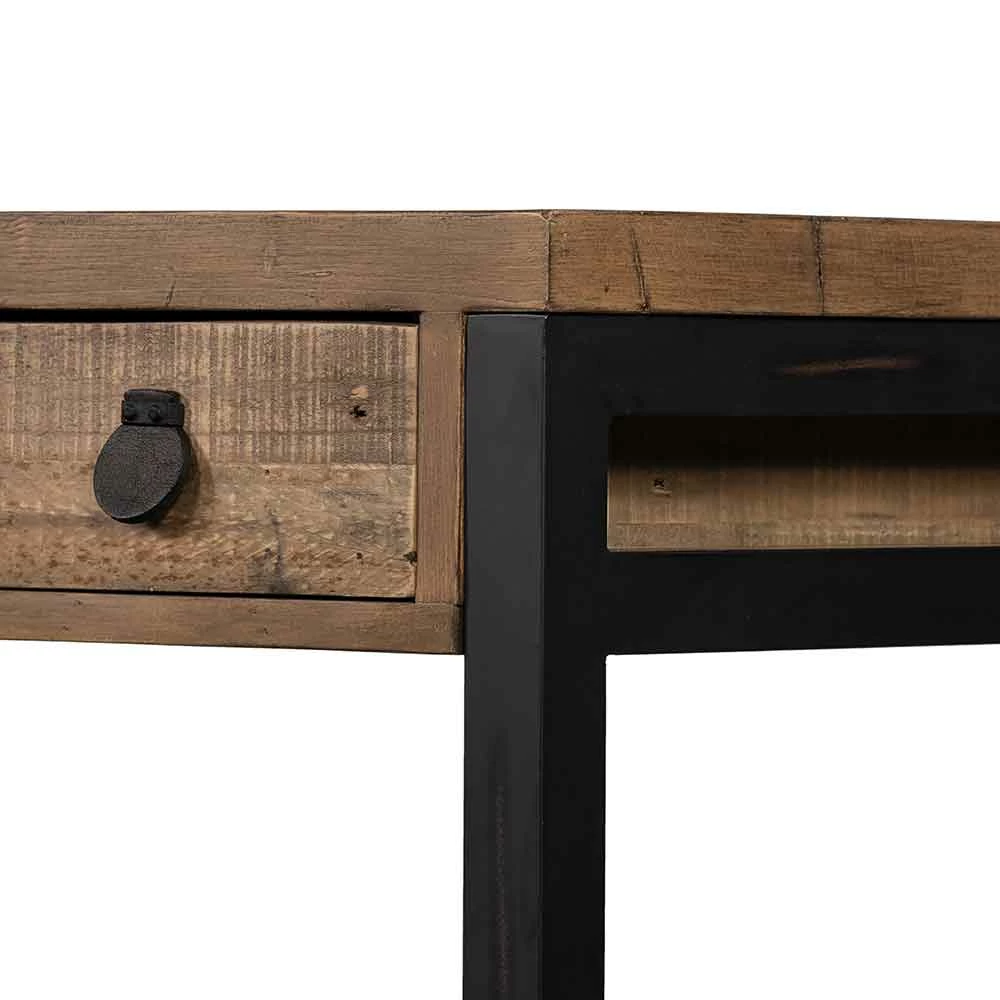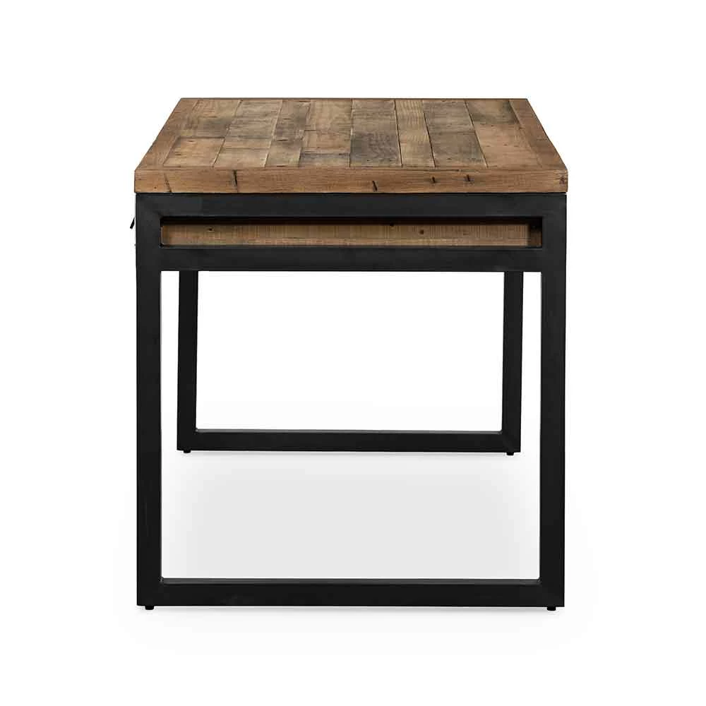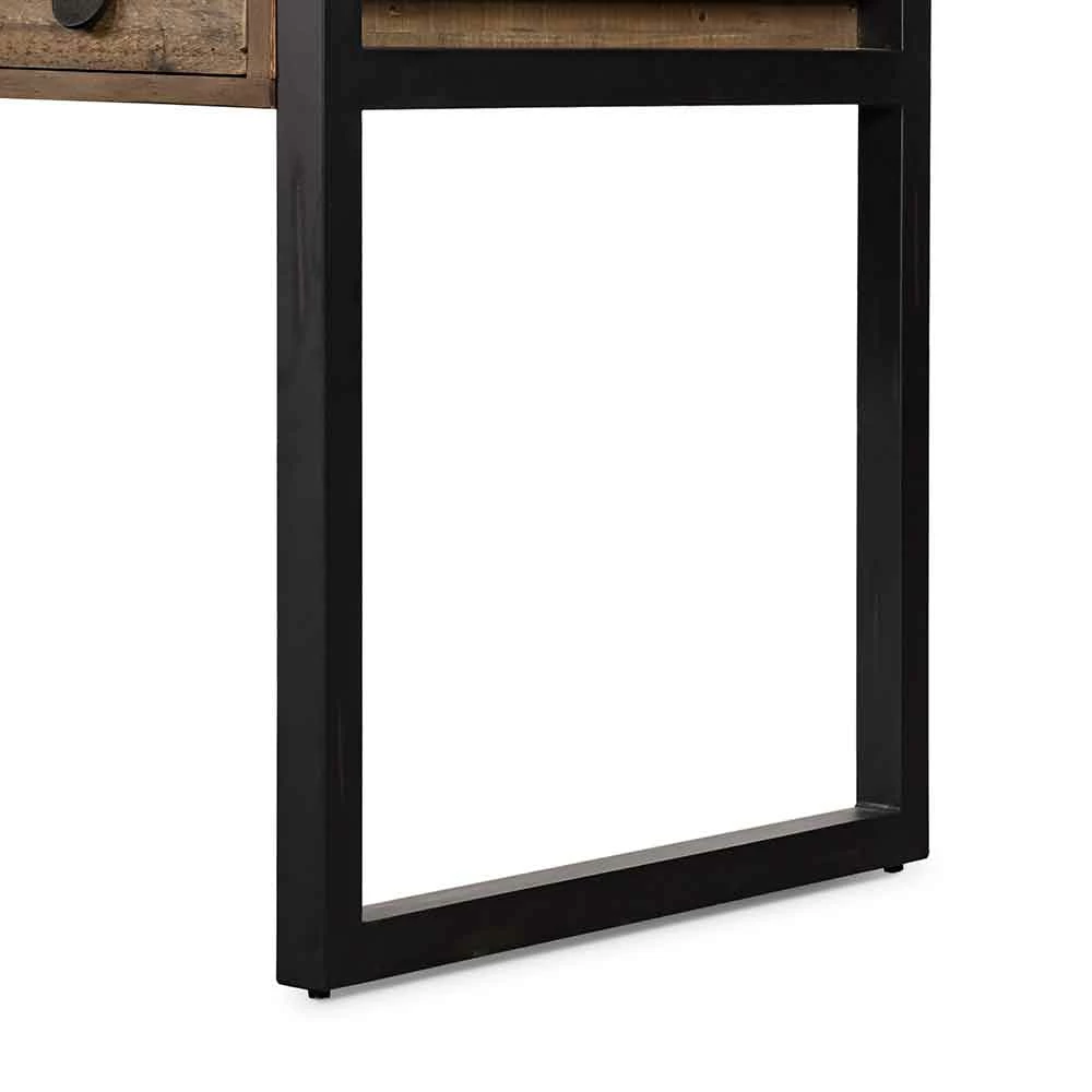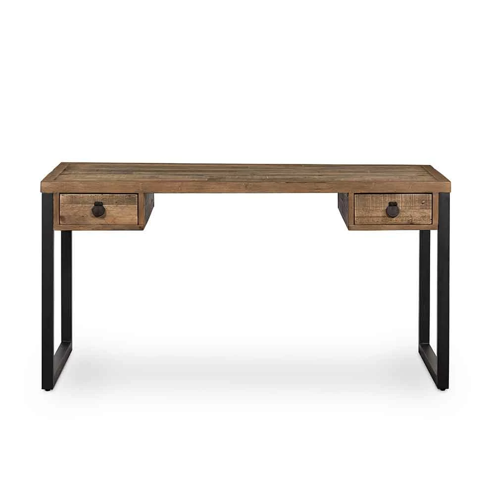 Simple, streamlined style. FSC-certified reclaimed woods feature iron legs finished in an antique black, for subtle rustic vibes. Dual drawers bring handy storage space to the modern writing desk.