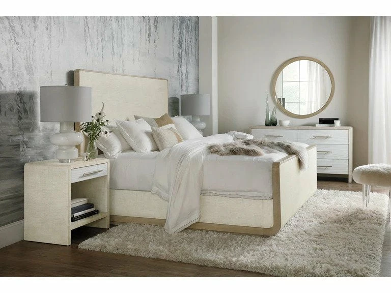 Designed to interject a sense of calm and tranquility into interior spaces, the Cascade Queen Sleigh Bed, part of the Cascade Collection, creates an elegant – yet livable, retreat from our modern day, fast-paced lifestyles. Characterized by its light and airy neutral color palette and use of mixed materials including oak, lacquered burlap, metal accents and champagne-tone hardware, the collection’s modern styling can easily find its way into a variety of interiors across the country. As soothing as water falling from a steep rocky slope, the Cascade Collection was designed to spark Zen, tranquility and calmness in any living space.