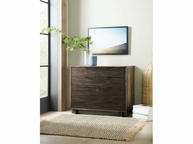 From farm-to-decor looks to rustic luxe, AMERICAN LIFE evokes a sense of community, easy living and authentic craftsmanship embodied in the Crafted Lateral File. It was during a local road trip and seeing first-hand a new wave of store fronts with rustic charm that the Crafted Collection was born. Constructed of poplar solids and oak veneers in a finish that is reminiscent of a bourbon barrel burnished over time, the collection features authentic design details including aluminum accents with a heavy copper patina, aged leather accents on case pieces, leather-wrapped hardware and heavily distressed textured finishes that provide authentic, aged character.