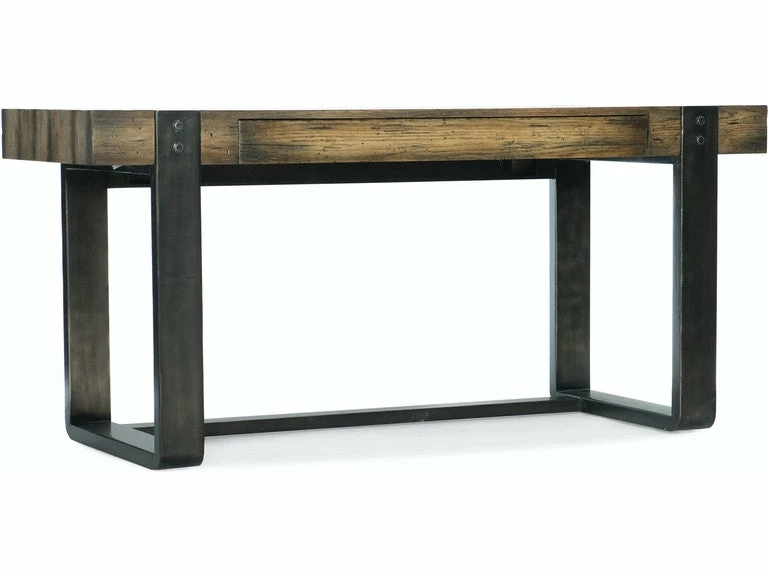 From farm-to-decor looks to rustic luxe, AMERICAN LIFE evokes a sense of community, easy living and authentic craftsmanship embodied in the Crafted Leg Desk. It was during a local road trip and seeing first-hand a new wave of store fronts with rustic charm that the Crafted Collection was born. Constructed of poplar solids and oak veneers in a finish that is reminiscent of a bourbon barrel burnished over time, the collection features authentic design details including aluminum accents with a heavy copper patina, aged leather accents on case pieces, leather-wrapped hardware and heavily distressed textured finishes that provide authentic, aged character.