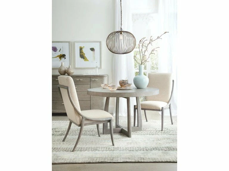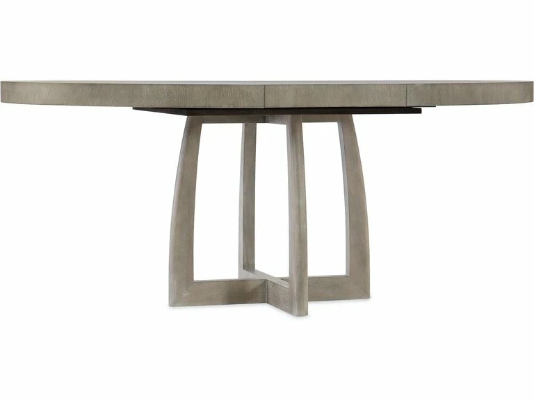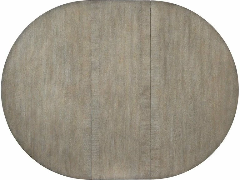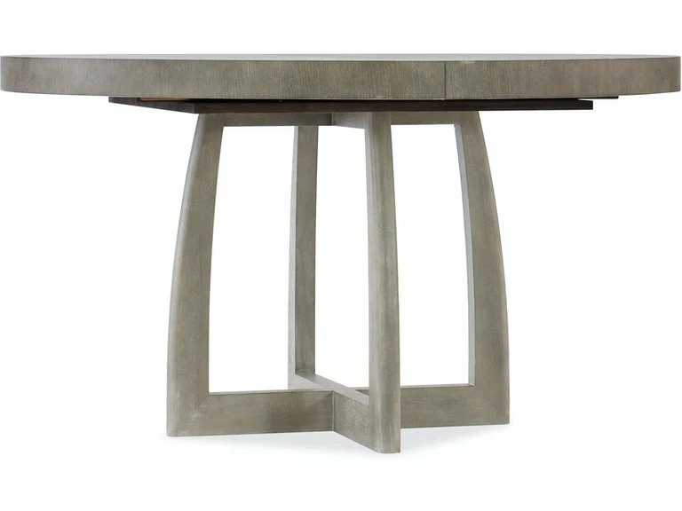 The soft form of the Affinity Round Dining Table is beautifully crafted in quartered White Oak in a wire-brushed greige and antique white finish. This 48-inch diameter pedestal table provides comfortable seating for four, or extends to 66-inches with the 18-inch leaf, included. The inviting transitional styling lends a boutique look to many decor settings, making it quite suitable for everyday or special occasion dining. Protect and maintain the beautiful oak wood finish by using placemats, trivets, and coasters.