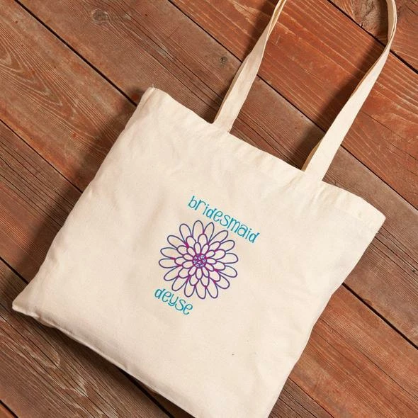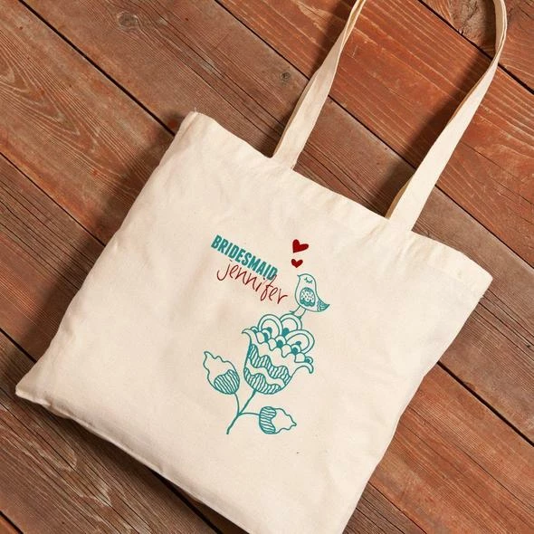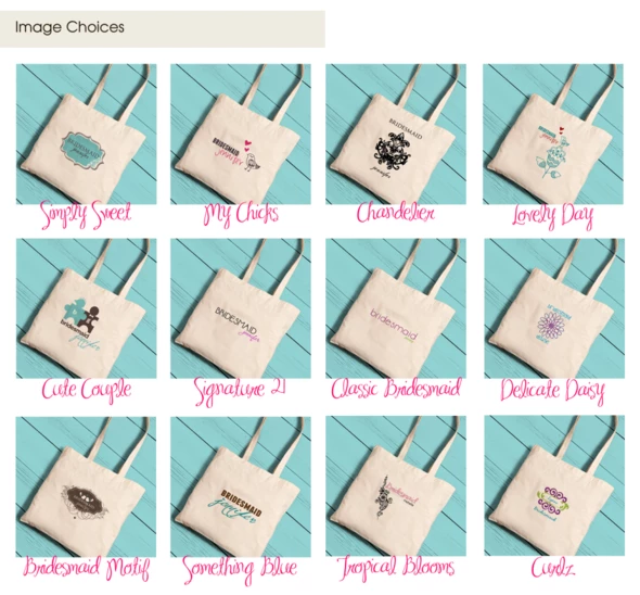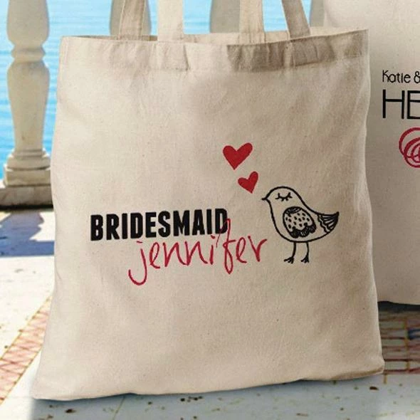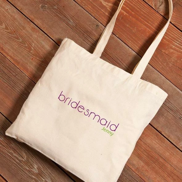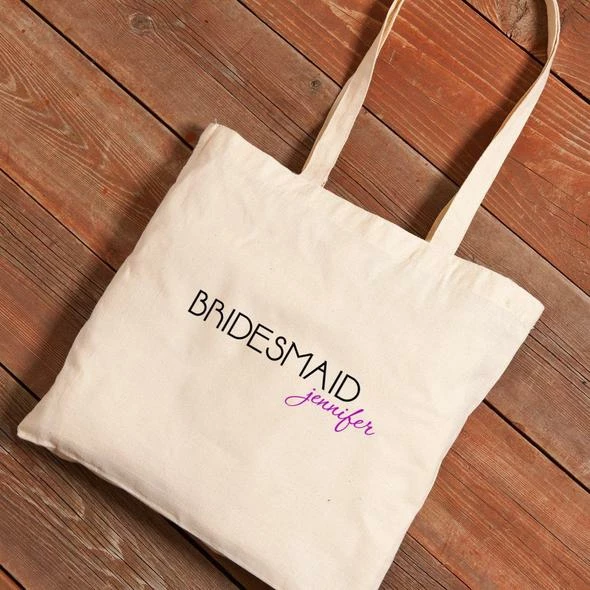 Need the perfect affordable gift for your bridesmaids? Look no further than the Personalized Bridesmaid Canvas Tote. This canvas tote commemorates your special occasion with a personalized gift that is functional and memorable. You can even use it like a goody bag for other keepsakes and items they will need to pull off your perfect day. With several designs to fit your personality and theirs, from classic to modern, you are sure to find the right one for each bridesmaid. Personalize each bag with up to 20 characters on one line (“Bridesmaid” is standard).