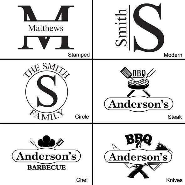 – Choose from 6 design options: Stamped, Modern, Circle, Chef, Knives, and Steak - Shipping Policy
