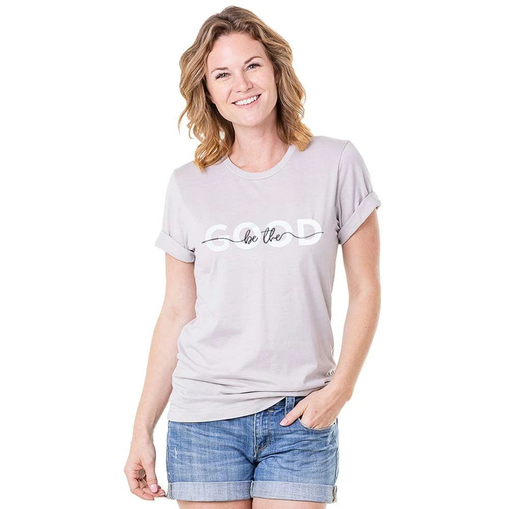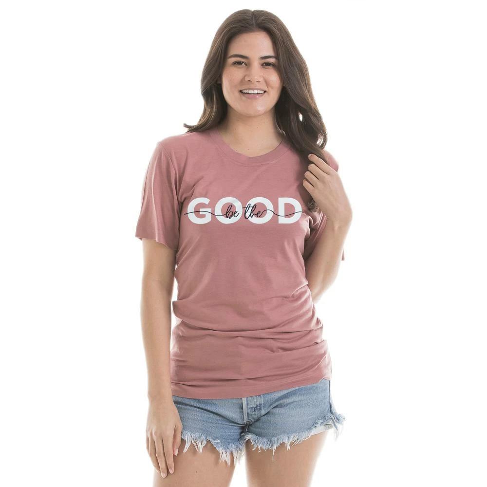 Inspire others with the Be The Good Women’s Graphic Tee Shirt from Katydid. This comfortable round neck short-sleeve tri-blend t-shirt is available in 4 soft colors to make any outfit look great.