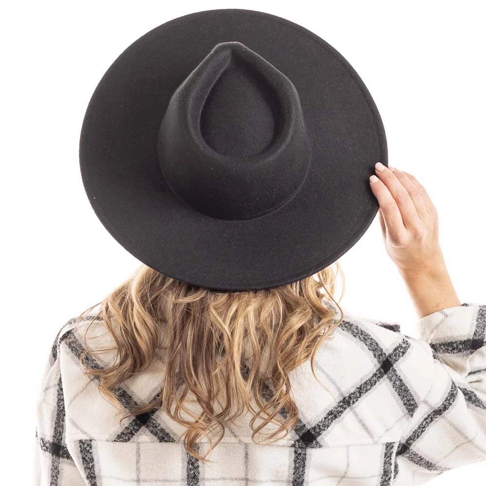 - Black Wide Brim Felt Hat for Women features: