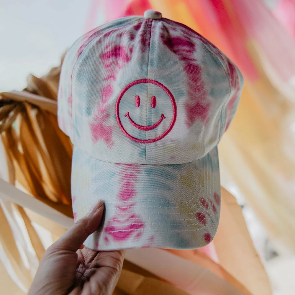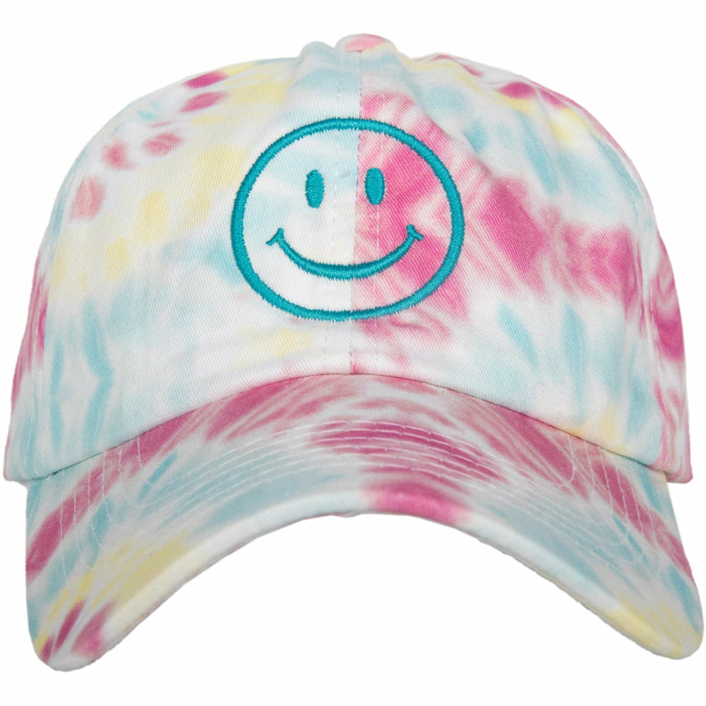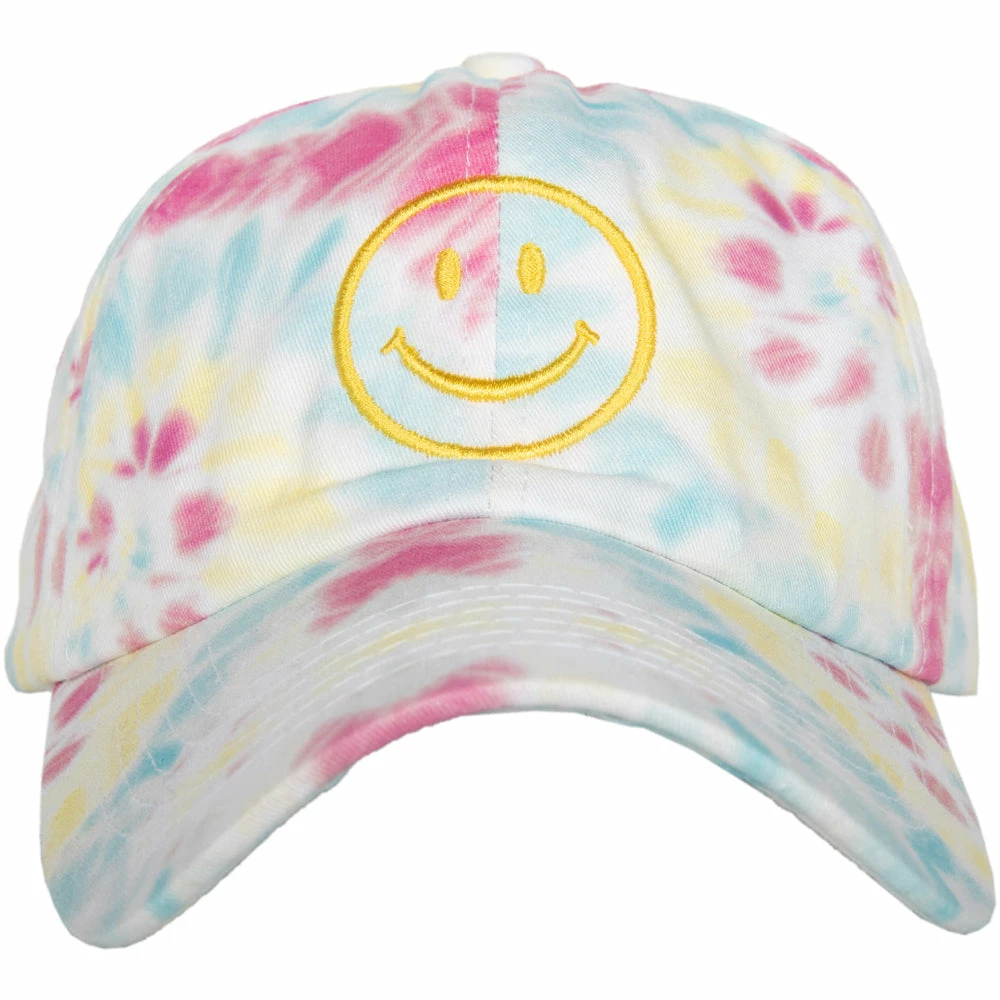 Everyone will be smiling when you’re wearing the Happy Face Tie Dye Baseball Hat. This bright and colorful cap is trendy and cute with the embroidered happy face on a pastel hot pink, teal blue, and yellow tie dye pattern. Perfect for adventures around town, on your vacay, or even catching a baseball game. Brilliant!