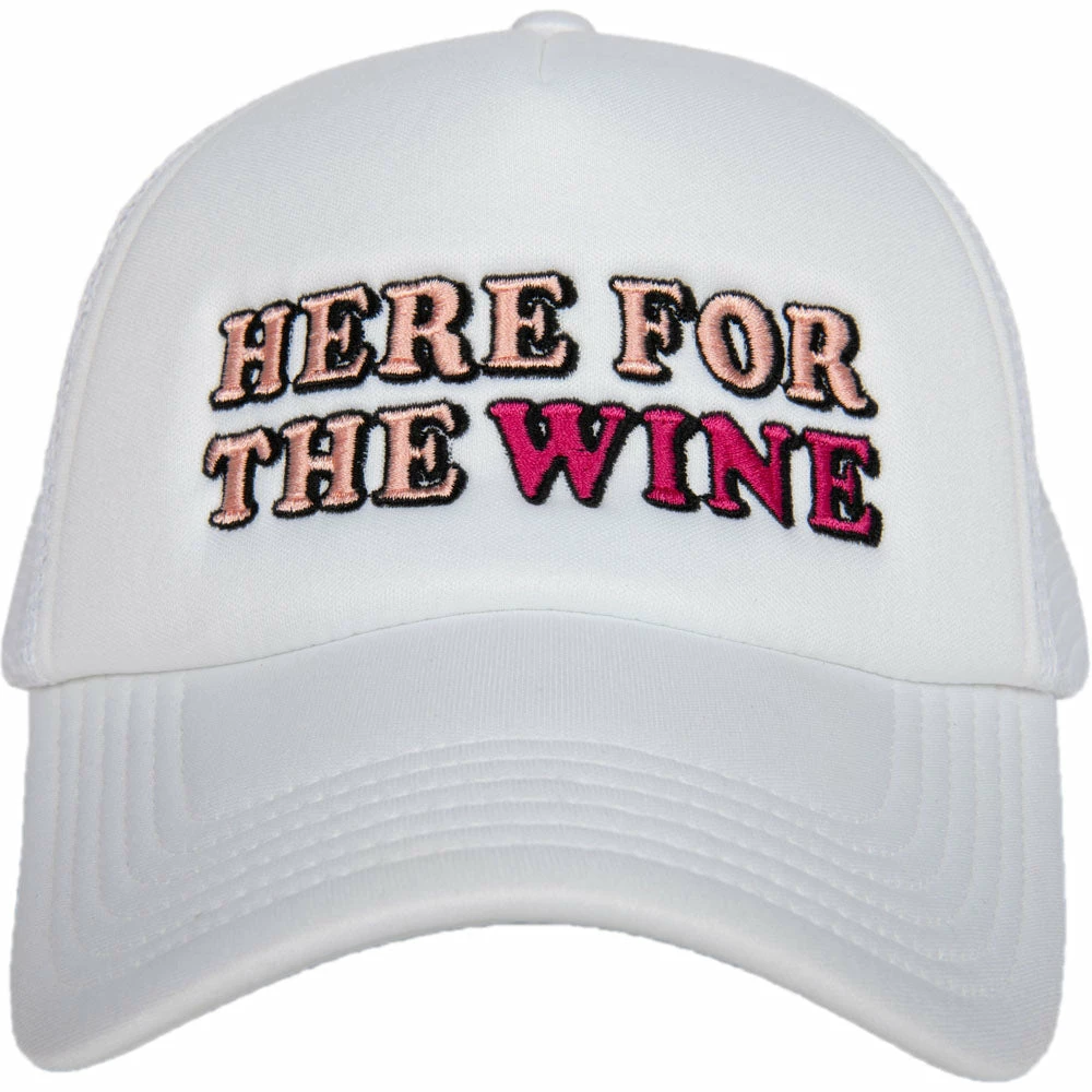 Flash the real reason you’re at the party with the Here For The Wine Trucker Hat. The foam front panel hat will have you styling and everyone smiling with the funny and cheerful saying front and center. The one size fits most white cap with shades of pink embroidery has a mesh netting back with an adjustable snapback closure. This trucker hat for women is cute and comfortable and perfect for partying or hanging out.