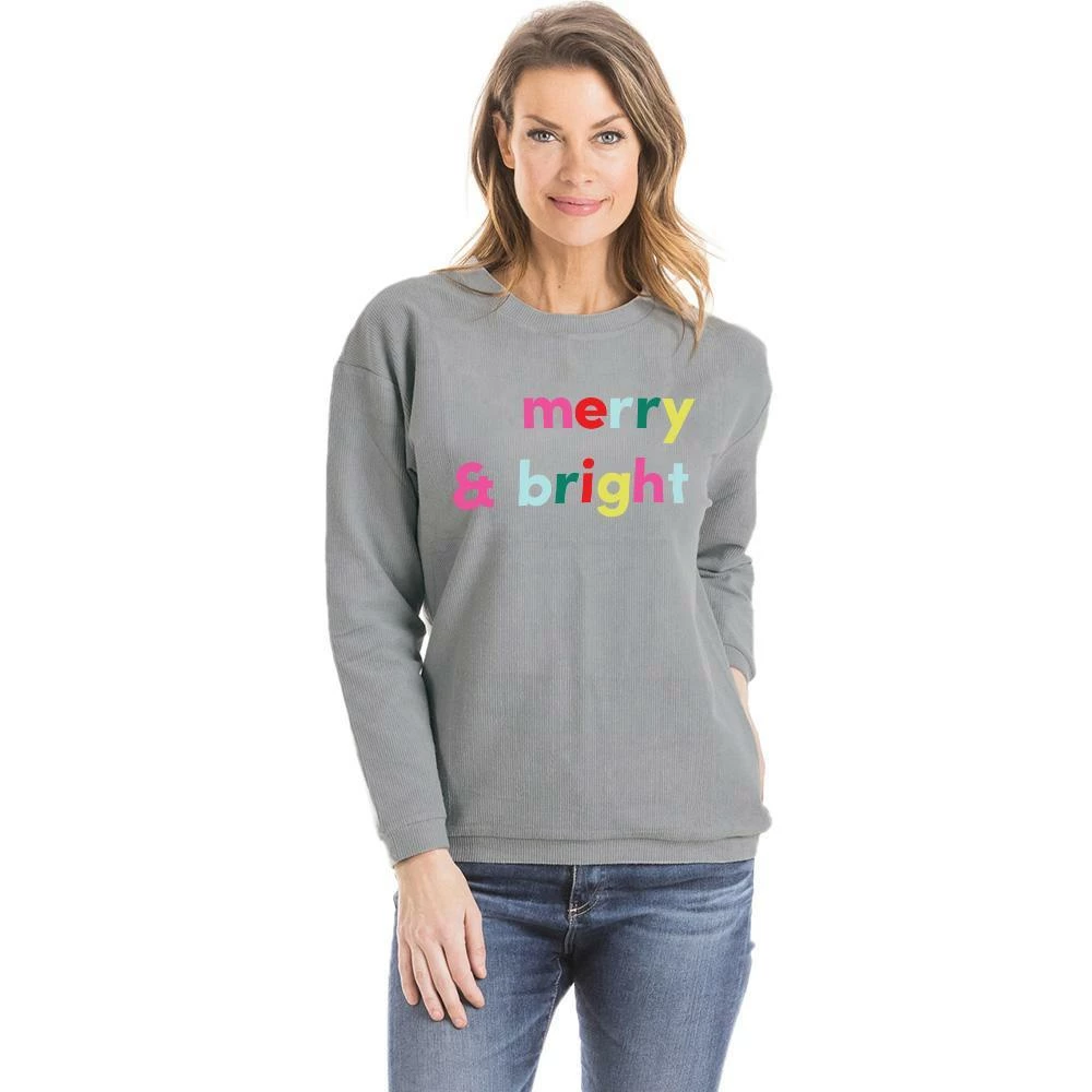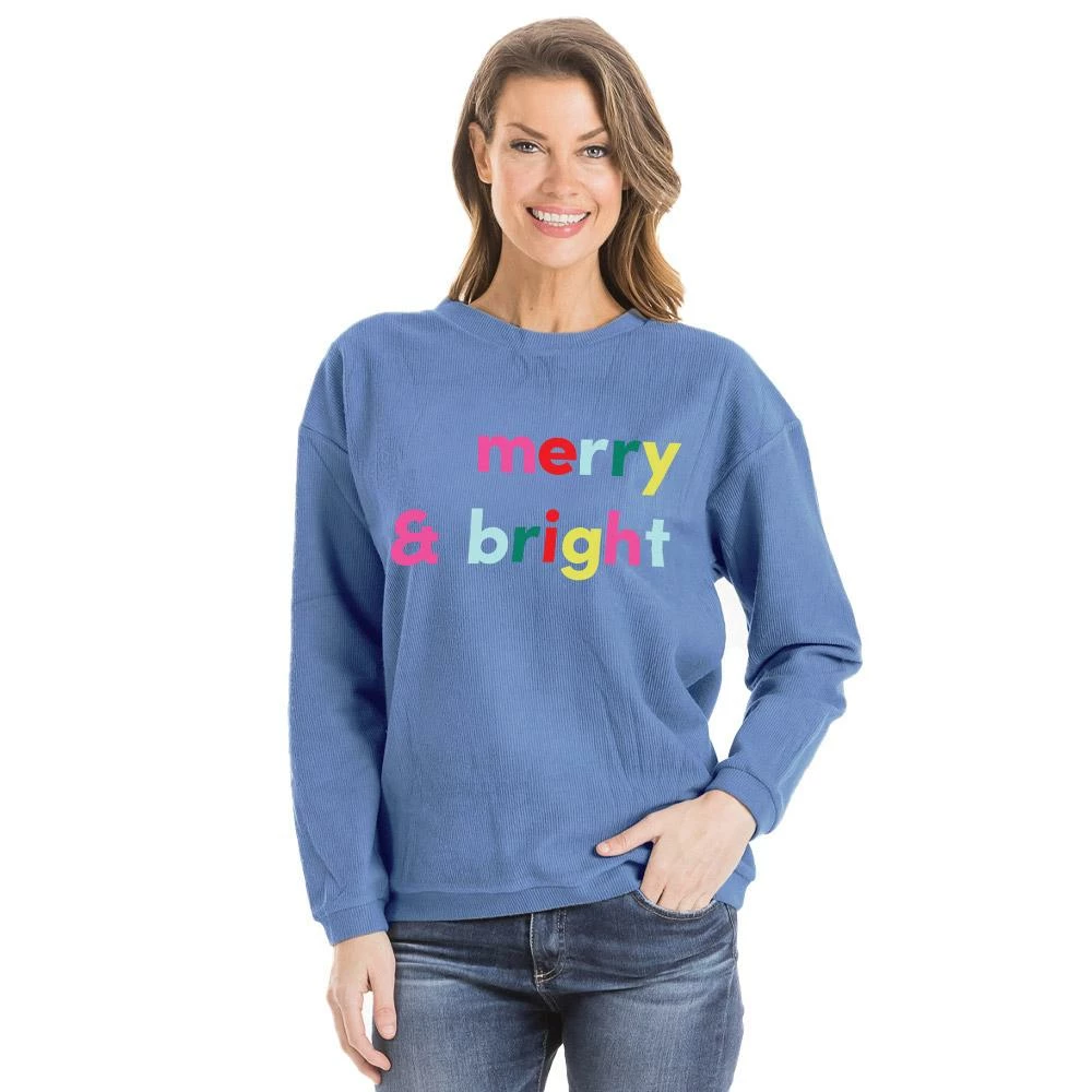 - Merry and Bright Christmas Corded Sweatshirt features: