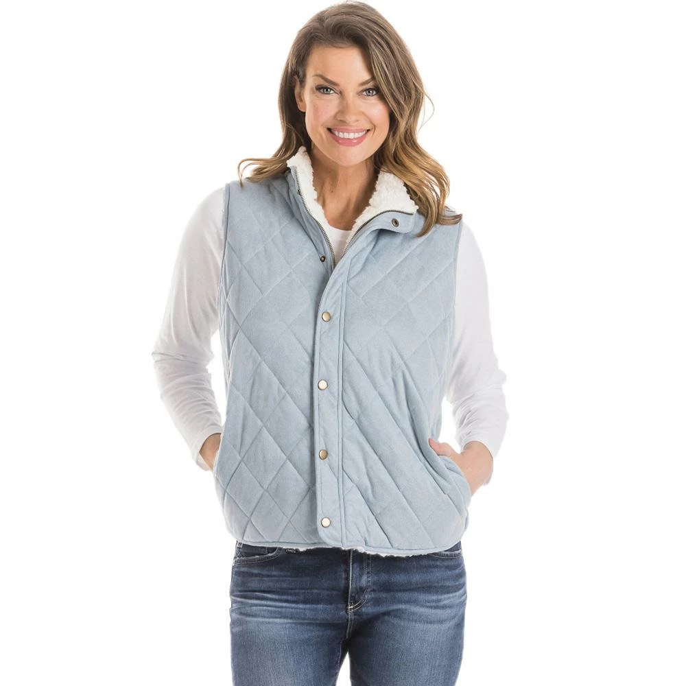 Keep yourself warm with style and value on chilly nights with the Quilted Reversible Sherpa Vest with Pockets. This 100% polyester vest has a reversible Sherpa inner lining that has its own fashionable look on the outside. Side pockets keep your hands warm and keys handy. Full zip with buttons on the quilted side.