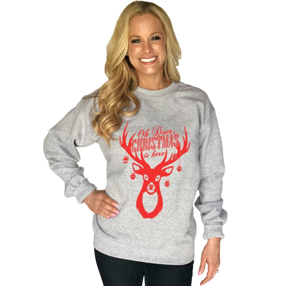 The Holiday Season won’t creep up on you while wearing the O Deer, Christmas Is Here sweatshirt. The long-sleeve sweatshirt is a lightweight 50% cotton/50% polyester blend. Available in sizes S-XL.