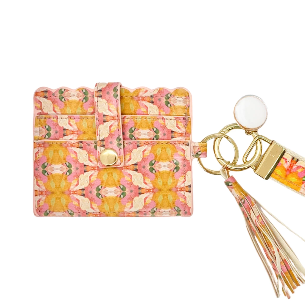 Fun and fashionable is the Flower Child Marigold Wristlet Wallet from Laura Park Designs.