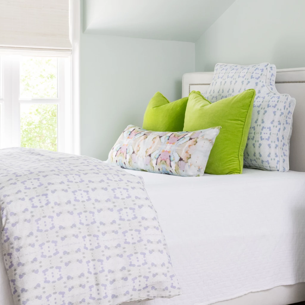 What can add so much vivid color to a bedroom makeover than a luxurious duvet cover from Laura Park Designs? A duvet cover and matching decor pillows (sold separately)! Inspired by her original artwork, the Cheetah Lavender Duvet Cover with its subtle pattern will highlight any bedroom. Available in two fabrics and three popular sizes.