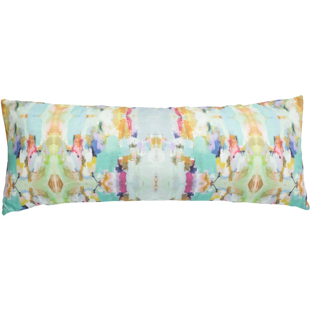 Brighten any living space with the Fiesta Linen Throw Pillow from Laura Park Designs. The soft multi-colored pattern complements a variety of patterns and textures with eye-catching appeal. Inspired by her original art, this designer-quality pillow brings vivid color to living spaces throughout the home. Available in a variety of sizes.
