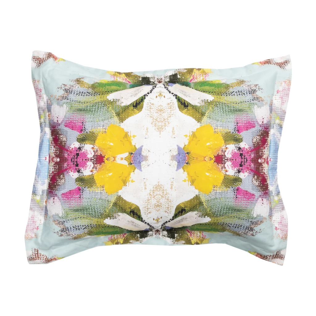 Add a splash of vivid color to your bedroom makeover with a luxurious sham cover from Laura Park Designs. Inspired by her original artwork, the Poppy Blue Sham with its subtle blue-grey pattern accentuated with pinks, yellows, and greens will highlight any bedroom. Available in two fabrics and three popular sizes.