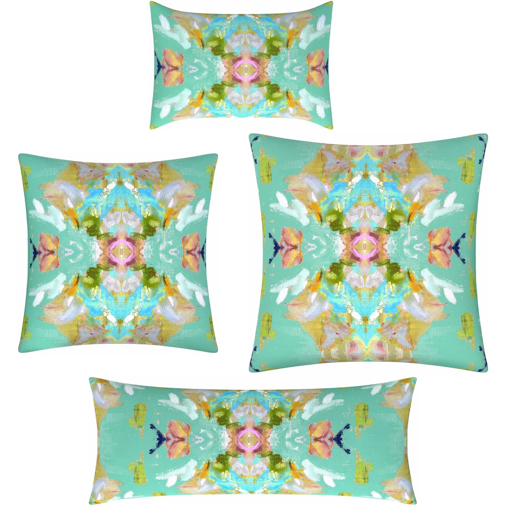Brighten any living space with the Stained Glass Turquoise Linen Throw Pillow from Laura Park Designs. The soft multi-colored pattern complements a variety of patterns and textures with eye-catching appeal. Inspired by her original art, this designer-quality pillow brings vivid color to living spaces throughout the home. This throw pillow is available in a variety of sizes.