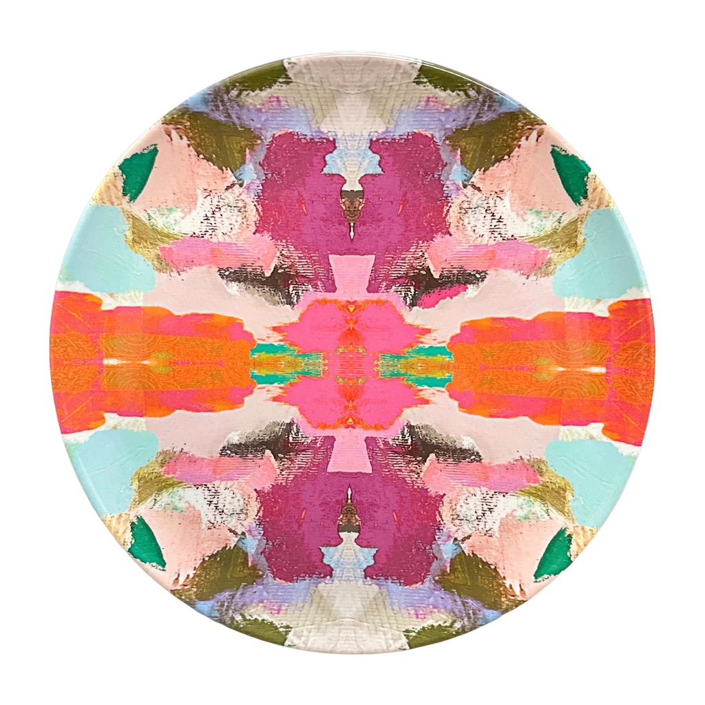 With the Begonia Melamine Plate. you can now can decorate your patio dining table or add panache to your picnic with your favorite Laura Park Designs pattern. This is a glossy melamine plate, one side printed with the pattern and a solid white background on the underside. The BPA-free durable dinner plate brings a pop of color to something you will use every day! Sold as a set of 4.
