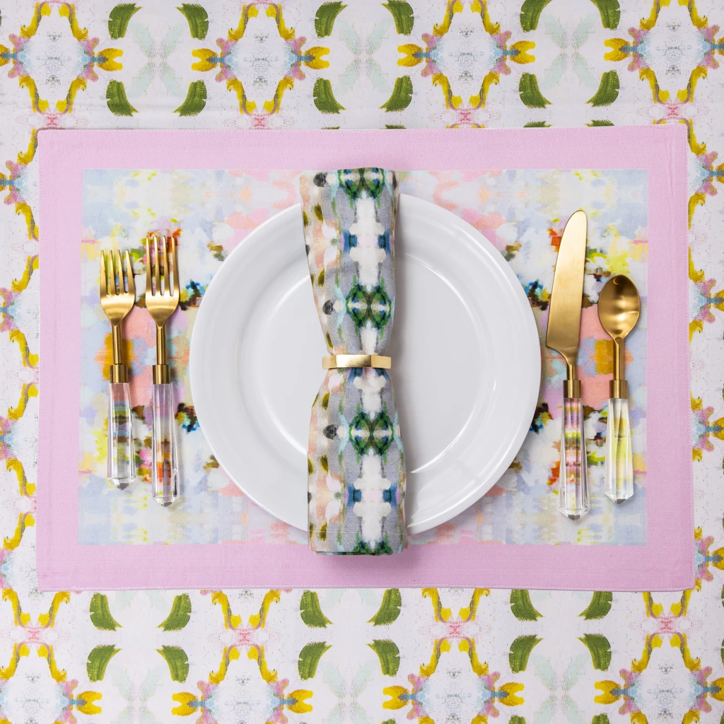 Dress your dining table with the elegant style of the Brooks Avenue Placemats. One of the most popular patterns from Laura Park Designs inspired by her original artwork, these placemats bring color and visual intrigue in design and appeal to the dining room table.