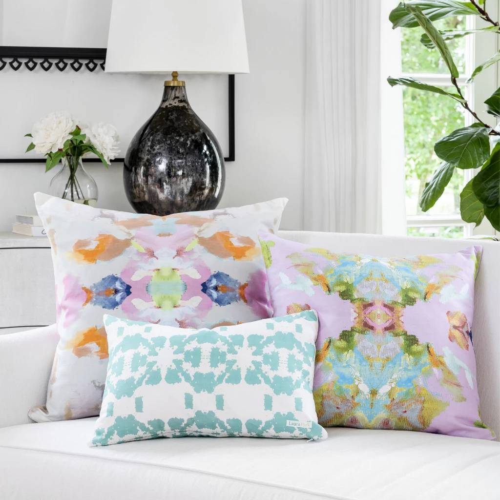 Brighten any living space with the Buttercup Linen Throw Pillow from Laura Park Designs. The soft multi-colored pattern complements a variety of patterns and textures with eye-catching appeal. Inspired by her original art, this designer-quality pillow brings vivid color to living spaces throughout the home. This throw pillow is available in a variety of sizes.