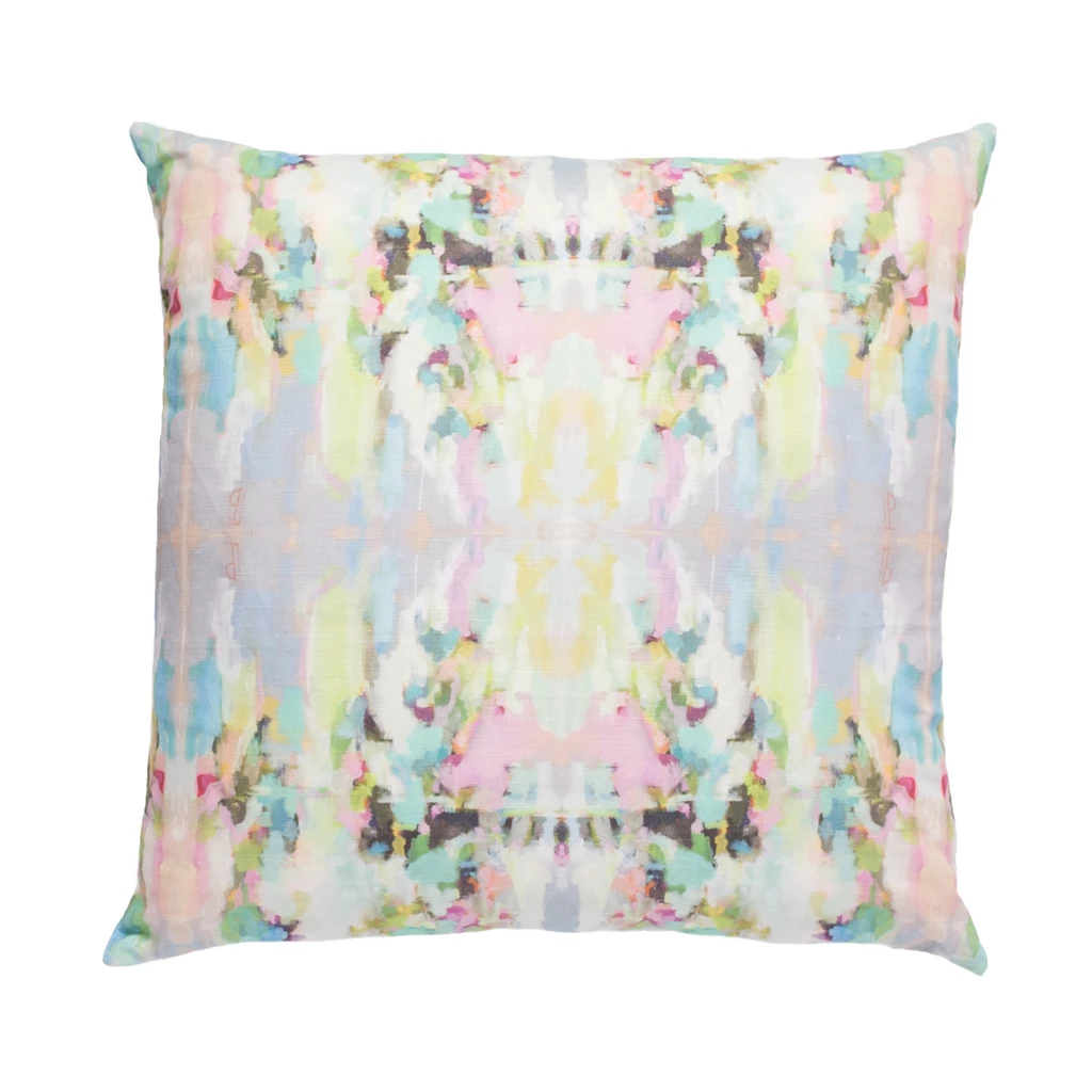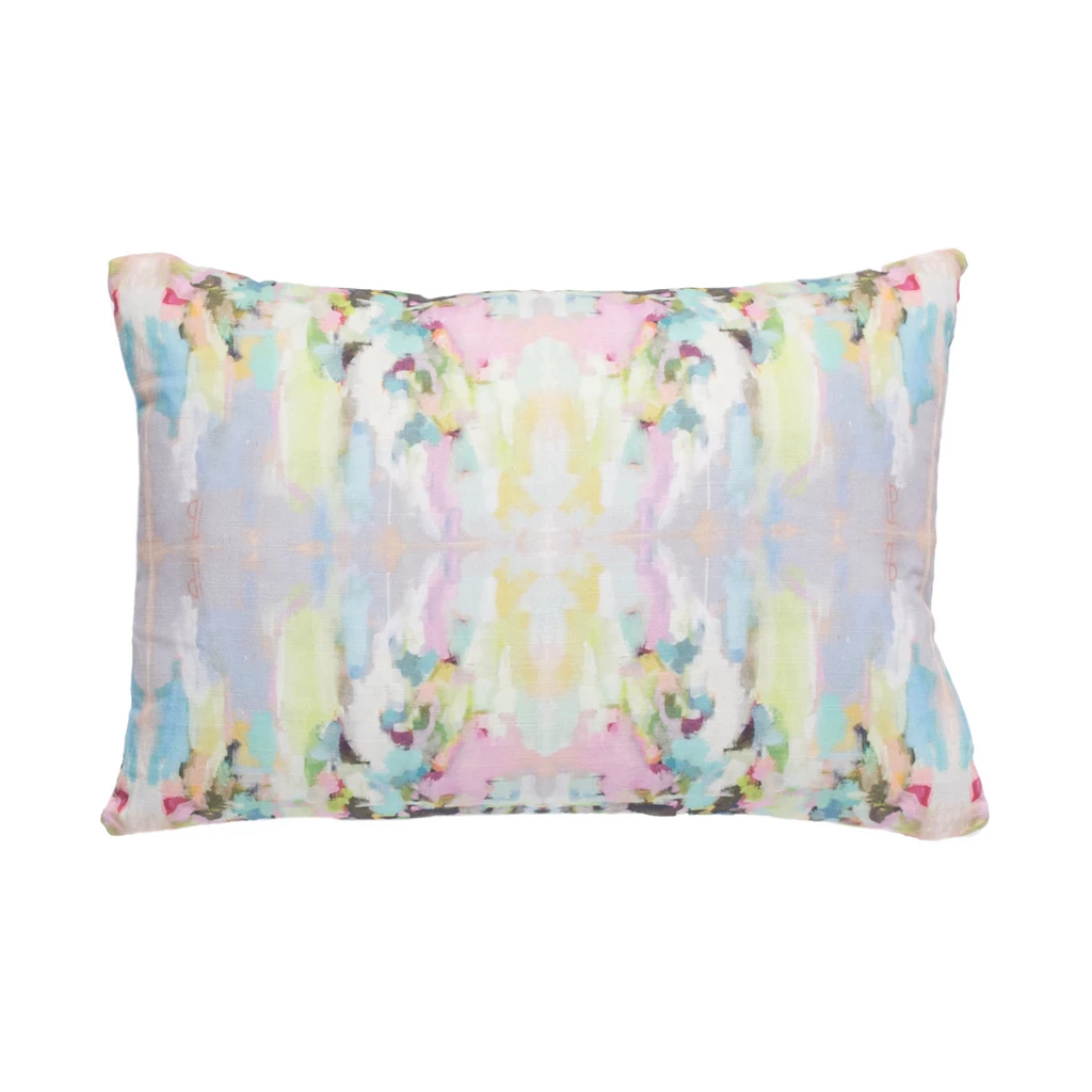 Brighten any living space with the Lemonade Stand Linen Throw Pillow from Laura Park Designs. The soft multi-colored pattern complements a variety of patterns and textures with eye-catching appeal. Inspired by her original art, this designer-quality pillow brings color to living spaces throughout the home. Available in a variety of sizes.