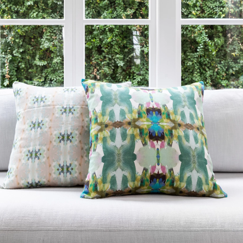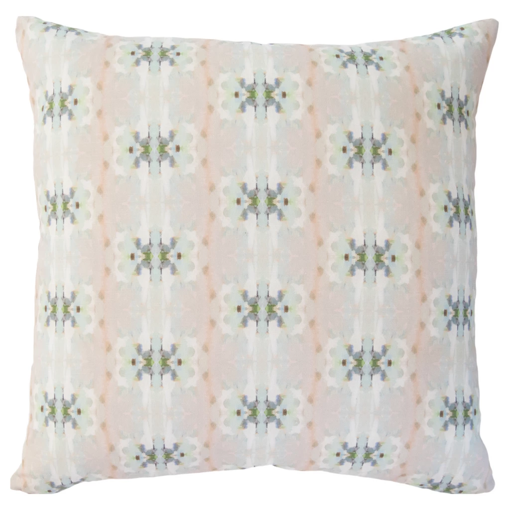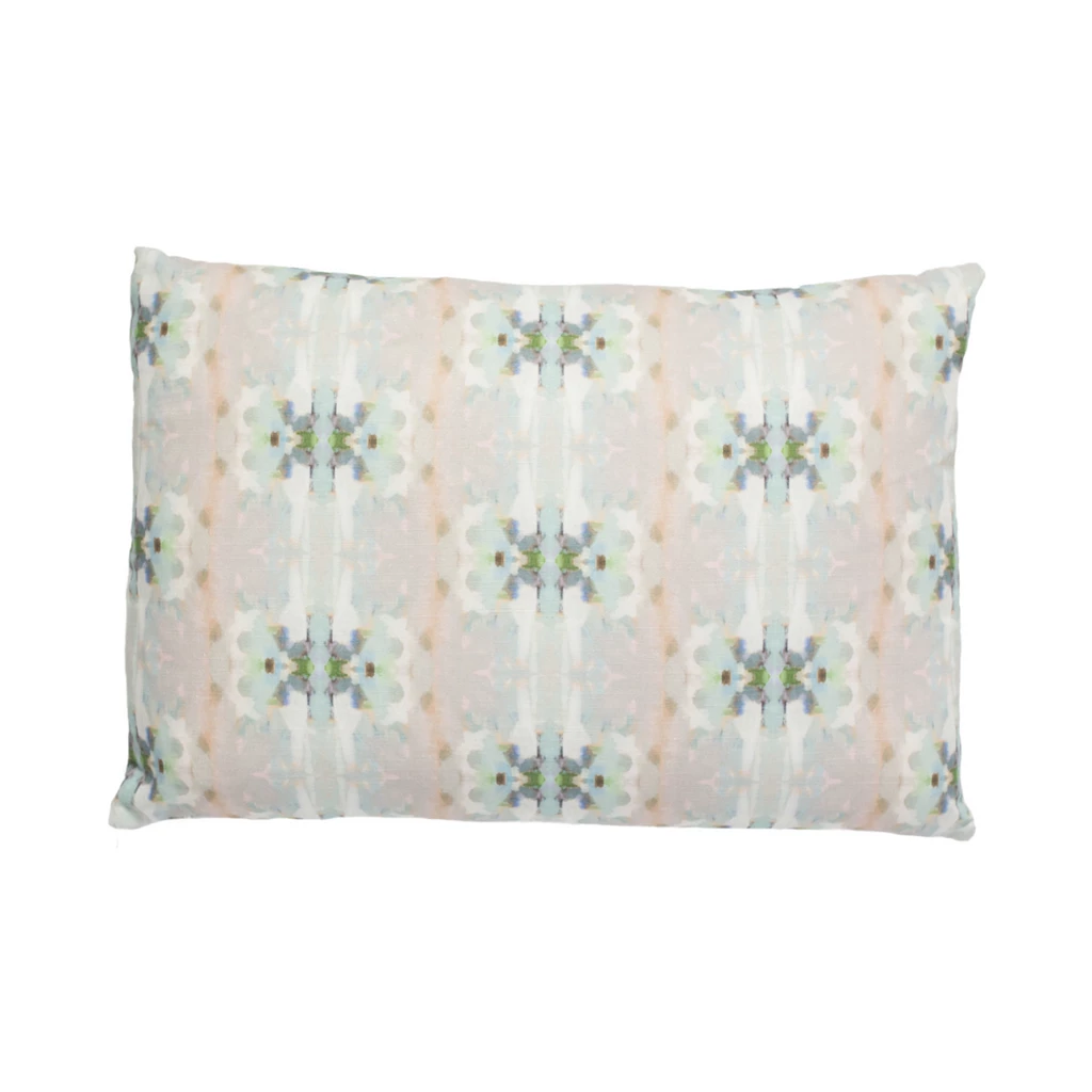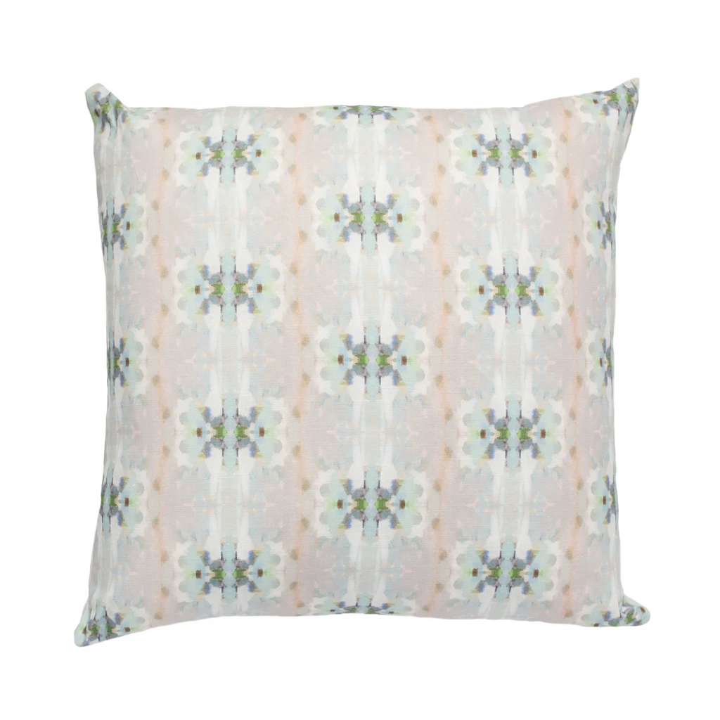 Brighten any living space with the Miss Ella Teal Linen Throw Pillow from Laura Park Designs. The soft multi-colored pattern complements a variety of patterns and textures with eye-catching appeal. Inspired by her original art, this designer-quality pillow brings color to living spaces throughout the home. Available in a variety of sizes.