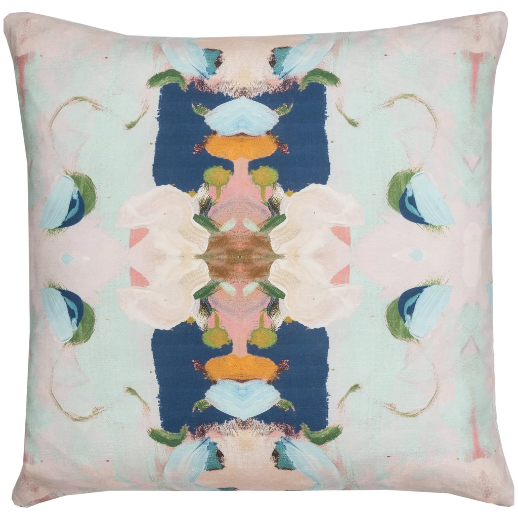 Brighten any living space with the Monet’s Garden Navy Linen Throw Pillow from Laura Park Designs. The soft multi-colored pattern complements a variety of patterns and textures with eye-catching appeal. Inspired by her original art, this designer-quality pillow brings color to living spaces throughout the home. Available in a variety of sizes.