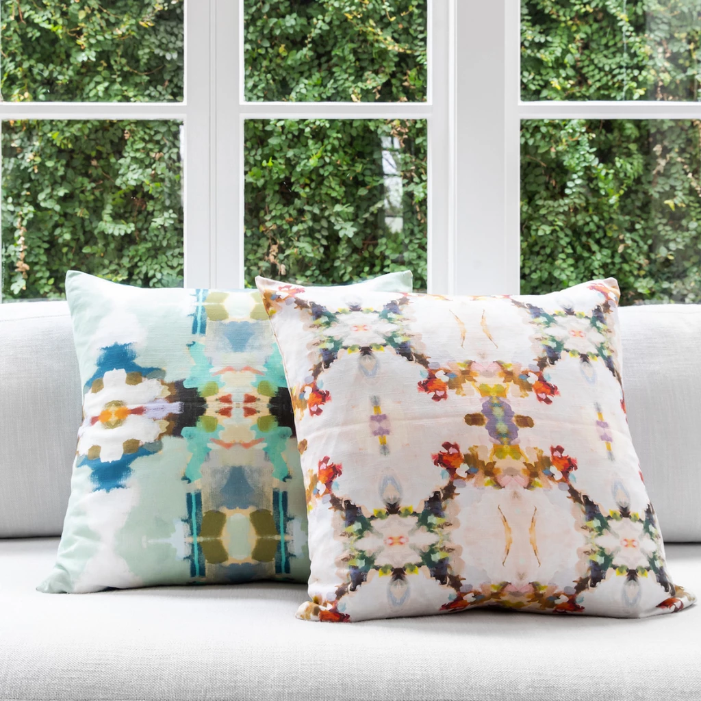 Brighten any living space with the Orchid Blossom Royal Blue Throw Pillow from Laura Park Designs. The soft multi-colored pattern complements a variety of patterns and textures with eye-catching appeal. Inspired by her original art, this designer-quality pillow brings color to living spaces throughout the home. Available in a variety of sizes.