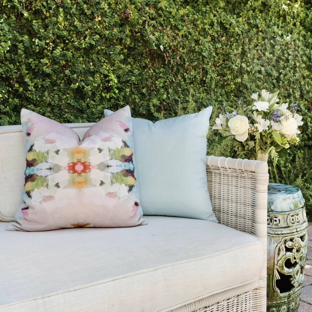 Bright and happy, as the outdoors should be! The Signature Blue outdoor pillow gives the look and feel of an indoor decorative pillow. They are soft-to-the-touch while keeping outdoor functionality in mind. The double-sided print with hidden zipper closure features a water and mold resistant pillow cover.