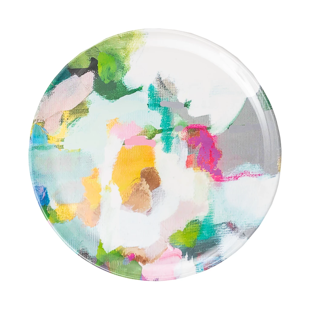 Now you can decorate your patio dining table with your favorite Laura Park Designs pattern. The Park Avenue Melamine Plate is a glossy melamine plate one side printed with the pattern and a solid white background on the underside. The BPA-free durable dinner plate brings a pop of color to something you will use every day! Sold as a set of 4.