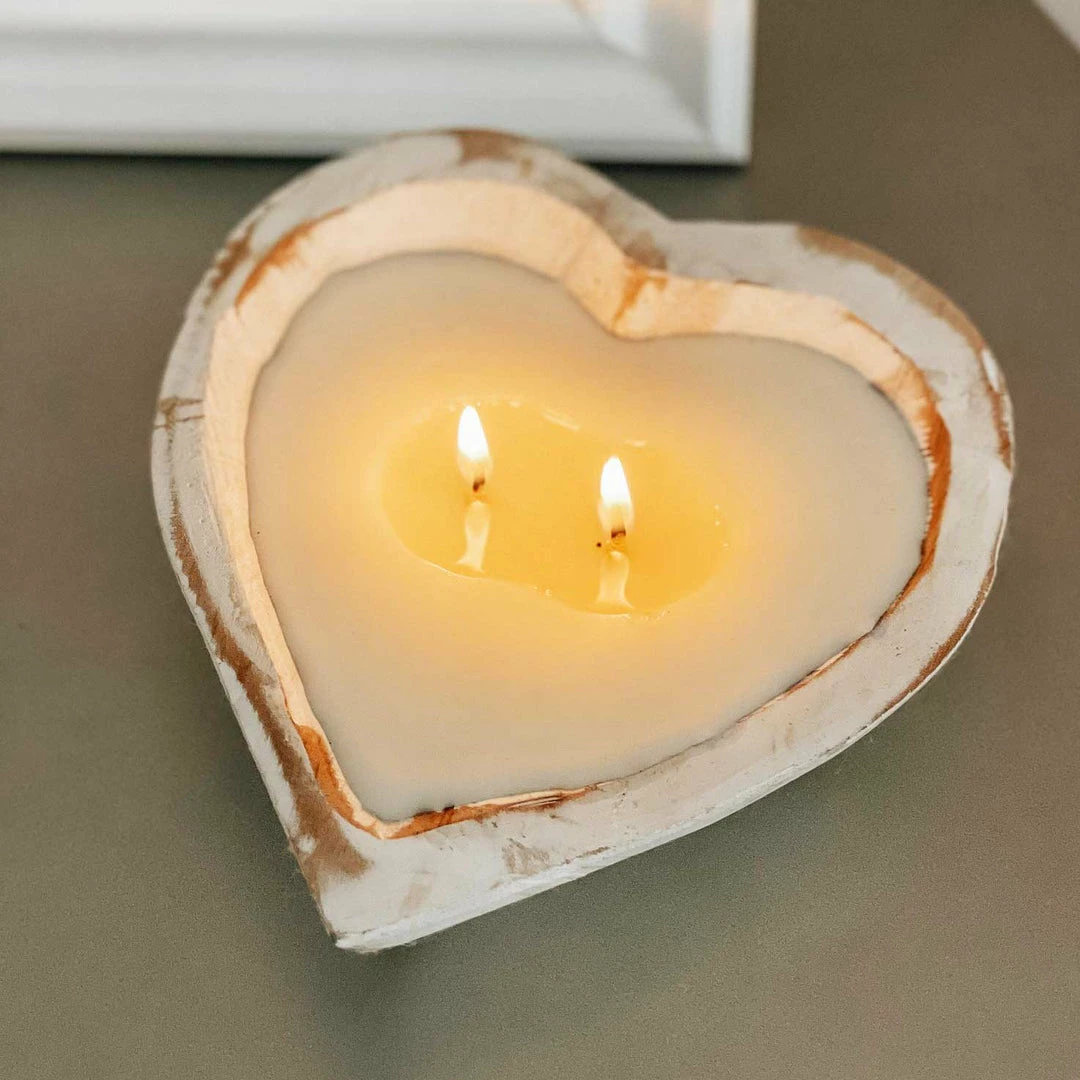 Give her, or him, a lasting symbol of your love with the Heart-Shaped Dough Bowl Candle. This unique hand-carved bowl is filled with a 100% soy wax blend and has two wicks for even burning. Each candle is hand-poured in Texas and with bowls available in brown or with a rustic white finish.