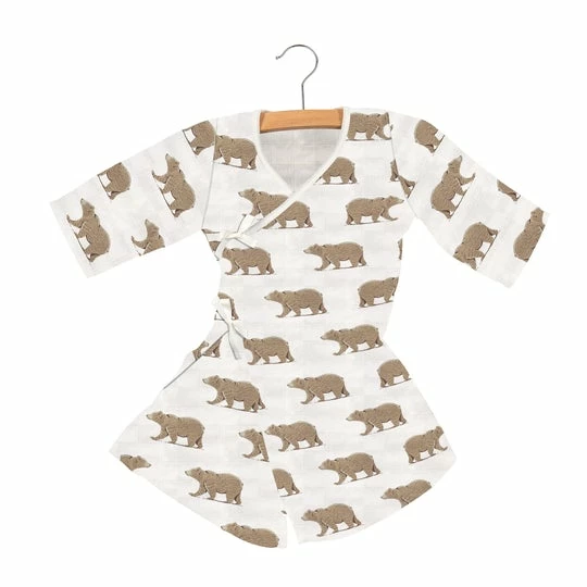 The Goodnight Bear Bamboo Mini Wrap Dress is soft as silk 100% bamboo muslin. The breathable dress features wrap ties that can be easily adjusted as your child grows. Available in sizes 6-12 months and 12-18 months.