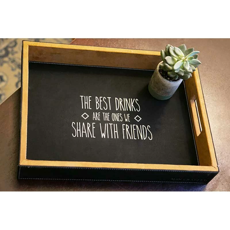 Perfect for patio entertaining or gathering around the TV with friends is this Best Drinks Serving Tray. The 16″x12″ PU leather tray has plenty of room for drinkware or snacks, or both! Stenciled on the tray is the slogan “The Best Drinks Are The Ones We Share With Friends.” A great gift for Dad or friends.