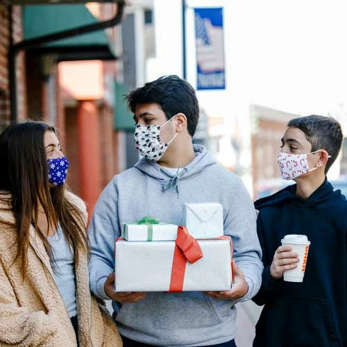 The Candy Canes kid’s face mask will add a festive spirit to the Holiday Season with the red candy canes on a field of white. The reusable 2-layer 100% cotton mask also has a filter pocket (not included). The ear loops are 55% nylon and 45% elastane and feature rubber stoppers to adjust the fit. Recommended for ages 6 and up.