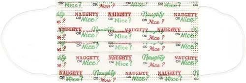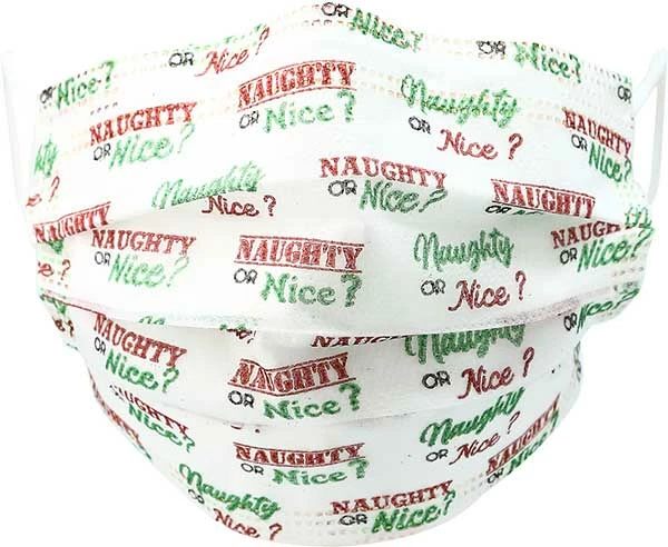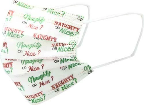Naughty or Nice adult face mask will add a festive spirit to the Holiday Season with the ever-popular phrase. Premium quality disposable 3-layer mask comes 7 to a package for a 12-week supply. One size fits most.