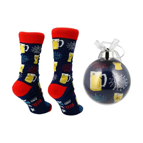 These Red, White and “Brew” socks with a 4″ ornament make a great gift for you or a loved one. The red, white, and blue unisex socks have the slogan on the soles and beer glasses and fireworks on the upper. 4″ plastic ornament has text decal and star imagery. Perfect for Christmas or gifting to a friend for 4th of July.