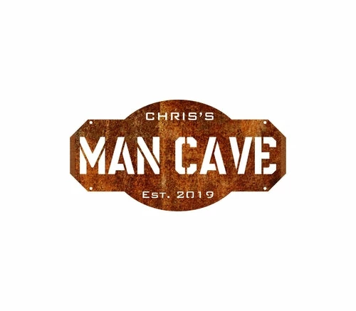 Show off your pride by putting your brand on your Man Cave with this personalized metal wall art sign. Customize the sign with your name and the year your Cave was “established,” be it the year you moved into your house, renovated a room, or just claimed your territory in the garage. Hang it on the wall behind the bar, near the pool table, or near the monster TV. Available in 4 sizes and 6 finishes, you are sure to find the one perfect for your space.