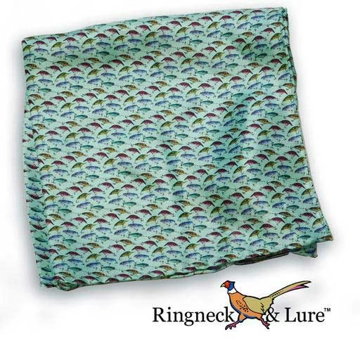 It’s time for the well-dressed Gentleman to “Loosen up!” and how best to do so in style than with a fashionable lake lures pocket square. Show off your passion for fishing and the outdoors with the collection of lures from illustrator and artist Trip Park. Whether you are wearing a tailored suit or sporting Friday’s business casual, make your own fashion statement with this eye-catching design on a teal field.