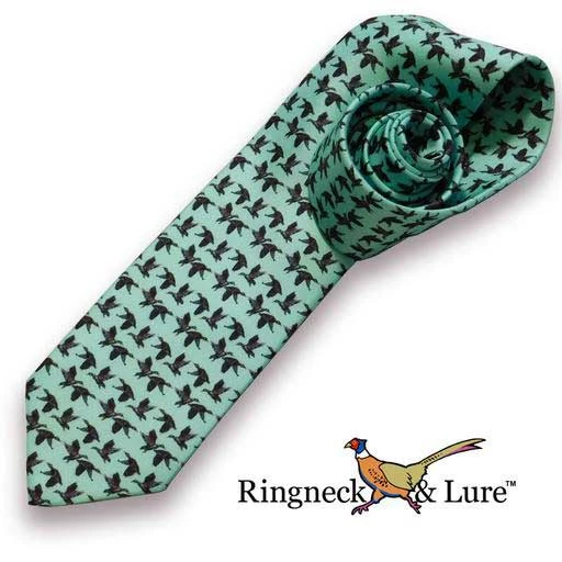 It’s time for the well-dressed Gentleman to “Loosen up!” and how best to do so in style than with a fashionable flock of Mallard’s necktie! Show off your passion for hunting and the outdoors with the variety of Mallards in flight from illustrator and artist Trip Park. Whether you are wearing a tailored suit or sporting Friday’s business casual, make your own fashion statement with this eye-catching design on an aqua blue field.