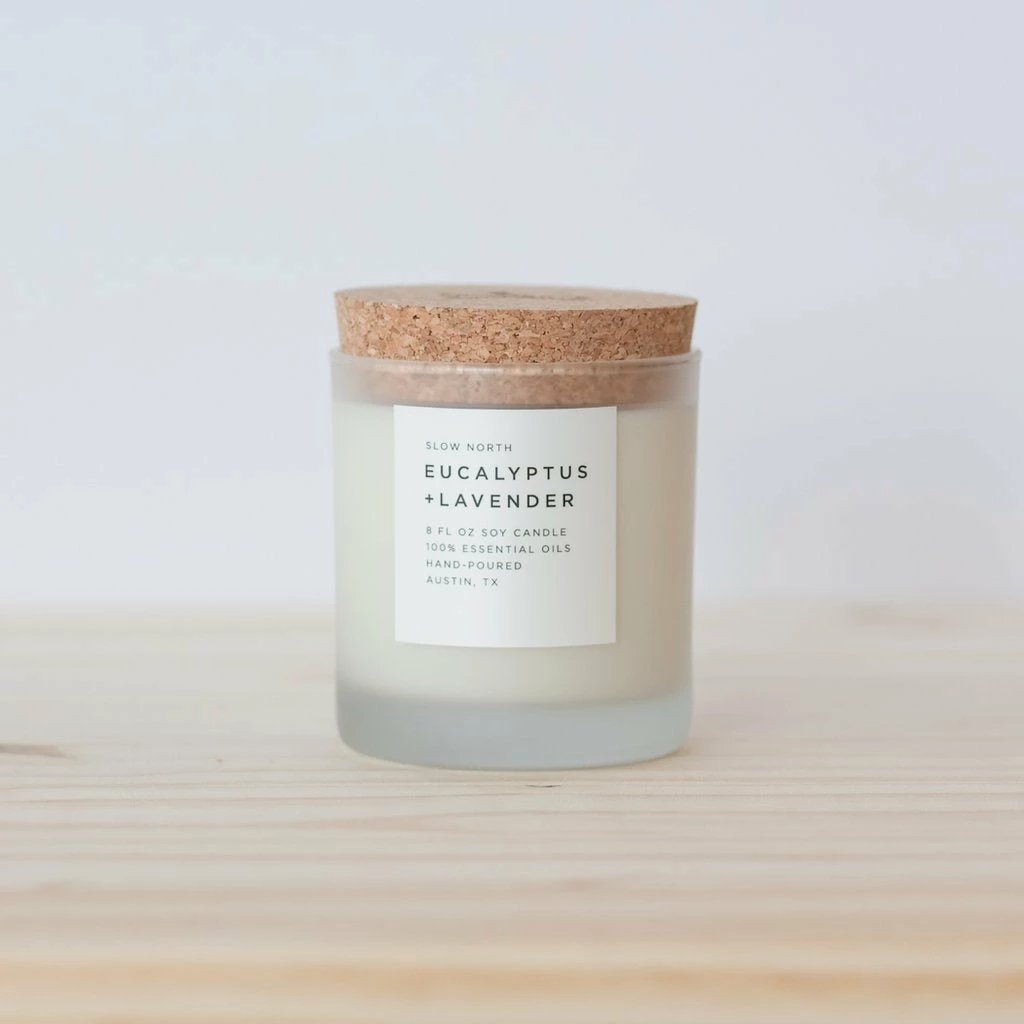 From ingredients to vessels, Slow North candles are designed with sustainability in mind. We’re proud to use only soy wax, a long-burning, biodegradable and renewable resource. These 8 oz candles are hand-poured into American-made, frosted glass tumblers and topped with a sustainably-sourced, fire-branded cork lid.