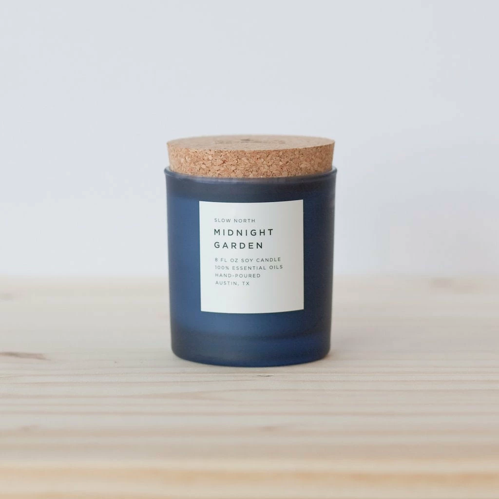 From ingredients to vessels, Slow North candles are designed with sustainability in mind. We’re proud to use only soy wax, a long-burning, biodegradable and renewable resource. These 8 oz candles are hand-poured into American-made, frosted glass tumblers and topped with a sustainably-sourced, fire-branded cork lid.