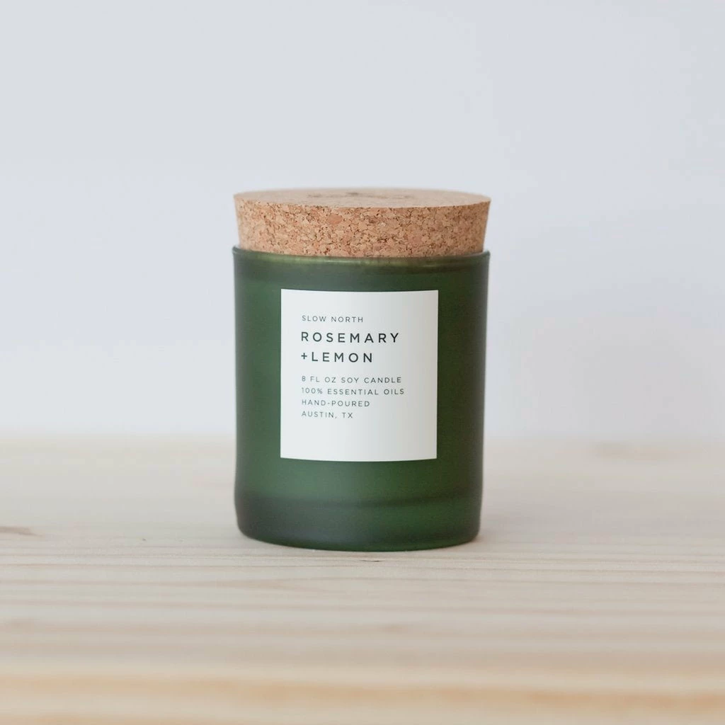 From ingredients to vessels, Slow North candles are designed with sustainability in mind. We’re proud to use only soy wax, a long-burning, biodegradable and renewable resource. These 8 oz candles are hand-poured into American-made, frosted glass tumblers and topped with a sustainably-sourced, fire-branded cork lid.